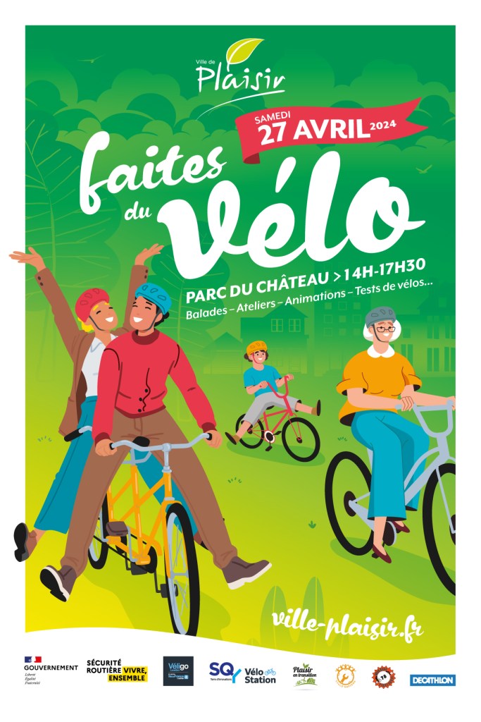 Retrouvez-nous le samedi 27 avril 2024 pour l’événement « Faites du vélo » au parc du château de Plaisir, de 14 h à 17h30.
