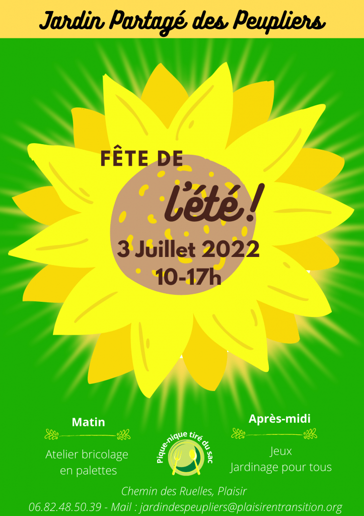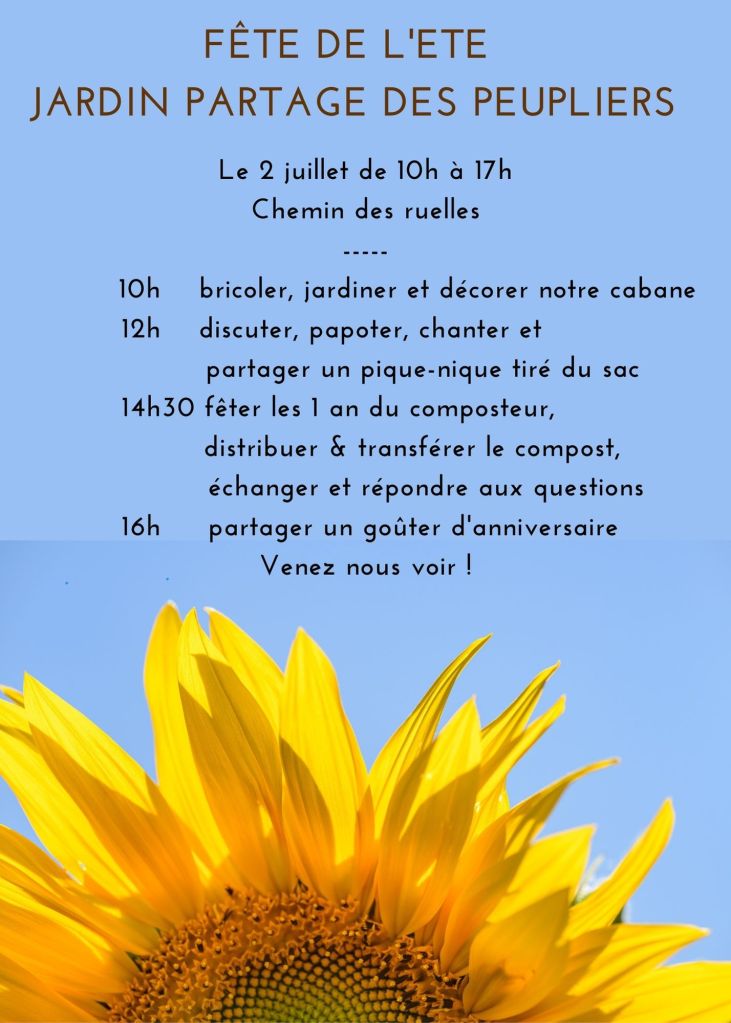 Nous profitons de la fête de l’été du Jardin Partagé des Peupliers, chemin des ruelles à Plaisir, le dimanche 2 juillet, pour organiser quelques animations autour du composteur.