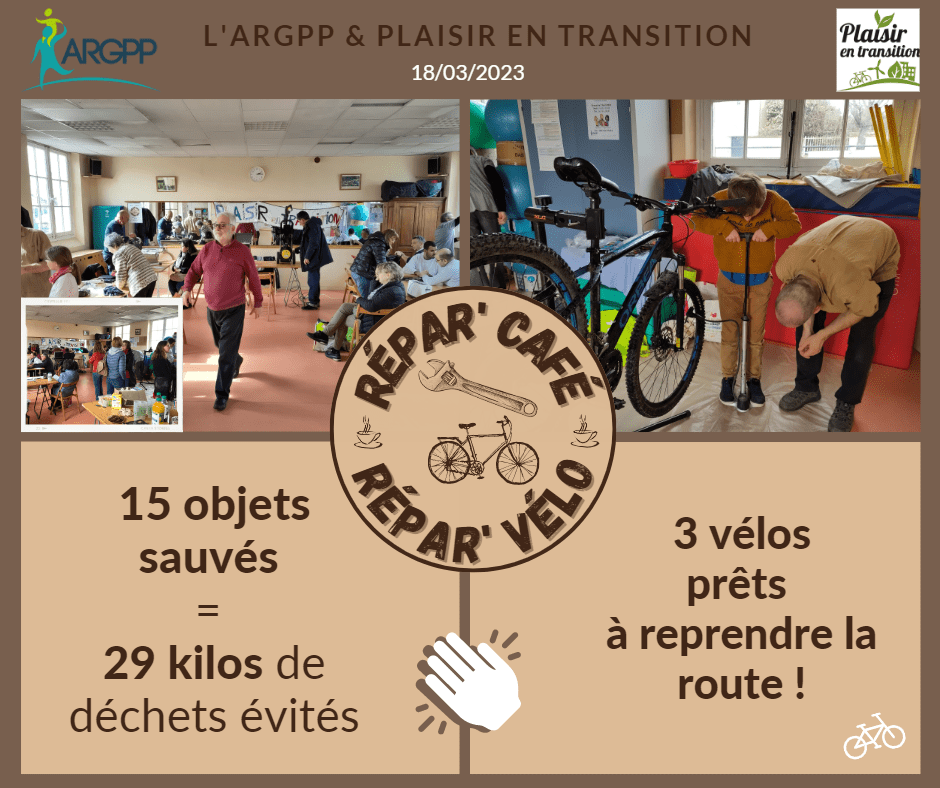 Samedi 18 mars se tenait le Répar Café et Répar’Vélo avec l’ARGPP et les bénévoles de Plaisir en Transition.