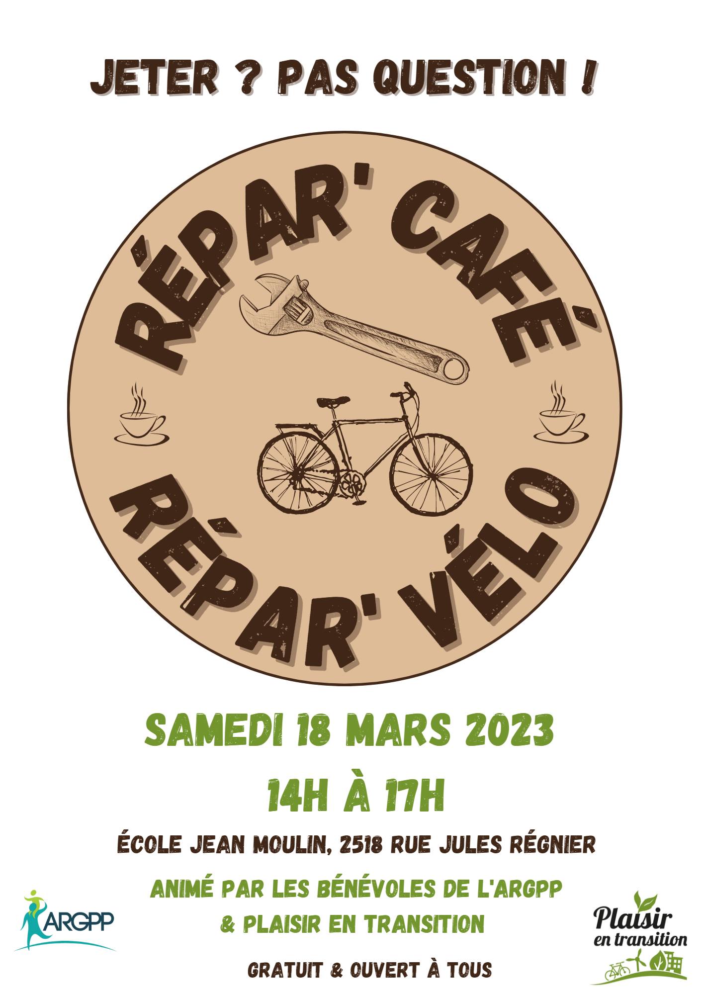 Plaisir en Transition, en partenariat avec l’ARGPP, vous convie au prochain Répar’Café & Répar Vélo qui se tiendra ce samedi 18 mars de 14h à 17h, dans la salle de l’ancienne école Jean Moulin (2518 rue Jules Régnier, Plaisir).